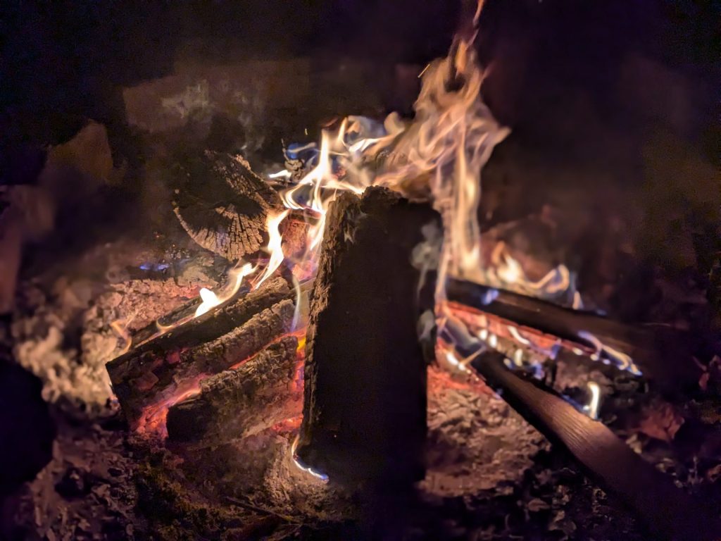 Once you start a campfire, you have to tend it. You can’t go away for thirty minutes because something could go wrong. The fire could spread and you start a forest fire. Always watch a fire. Be careful. It’s a great tool. Like any tool, fires deserves respect and a little practice.