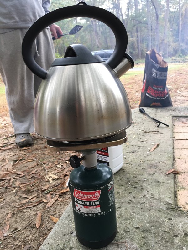 With a rocket stove, you’re going to stay with fairly small sticks the whole time, and you won’t need a stick bigger than three-eighths of an inch. That’s the advantage of those; they’re very efficient. If you use a Kelly Kettle, you’re going to use small twigs the whole time. You want to have a big stack of small twigs and just slowly feed the fire. The difference with the rocket stove and the Kelly Kettle is that you get hot water quickly. The downside is they need constant feeding of fuel. The very good thing is that you really don’t need much fuel to heat your water. A small box of small twigs can get you through several pots of coffee or bowls of oatmeal.