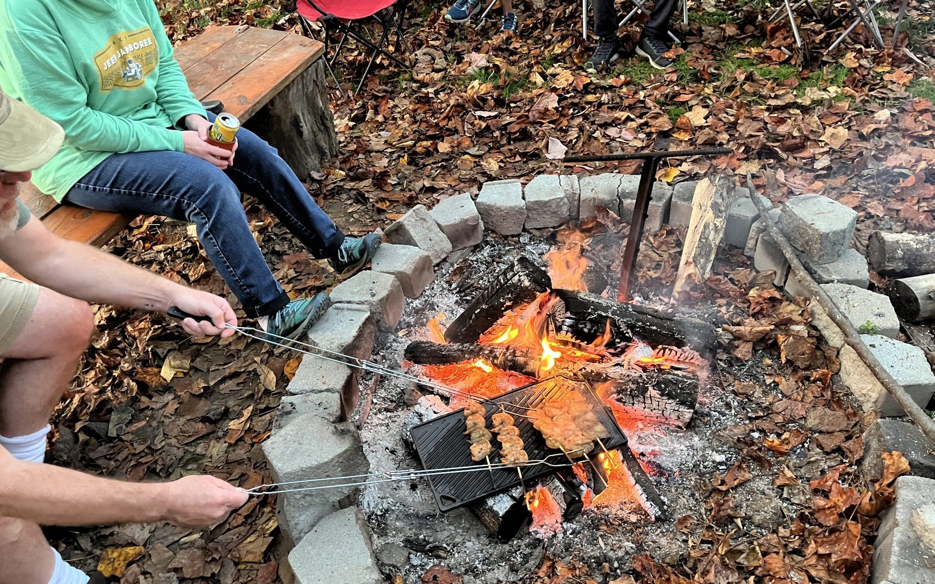 Later in the evening you may want to throw on a big log as a backstop. It will sit there and start to catch on fire. It’s going take a long time to ignite, but when it does, it’s going to burn for a long time, which is awfully nice while enjoying the campfire.